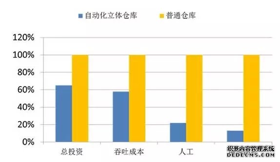 立體倉庫內,各類自動化設備代替大量人工作業,大大降低人力資源成本。